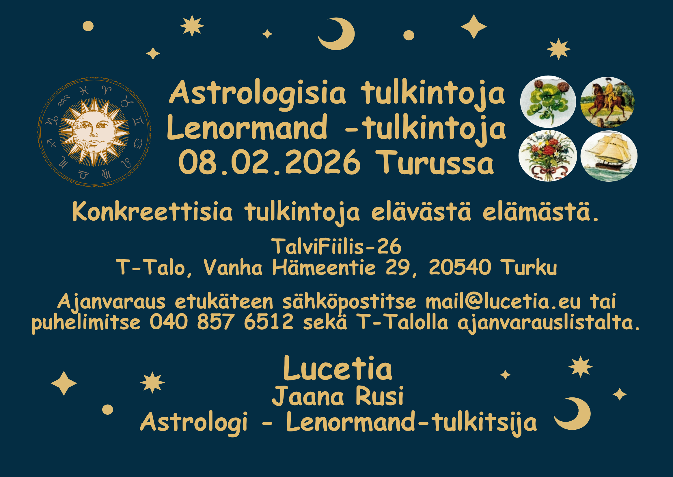 Tulossa retriitti päivä heinäkuussa MA 27.7.2026 aiheena: selväaistit, mediaalinen työskentely ja energialla parantaminen. Max ryhmäkoko 8. Lisää infoa tästä kevään aikana. Kouluttajina Katja Mikkola ja Minna Blomqvist.